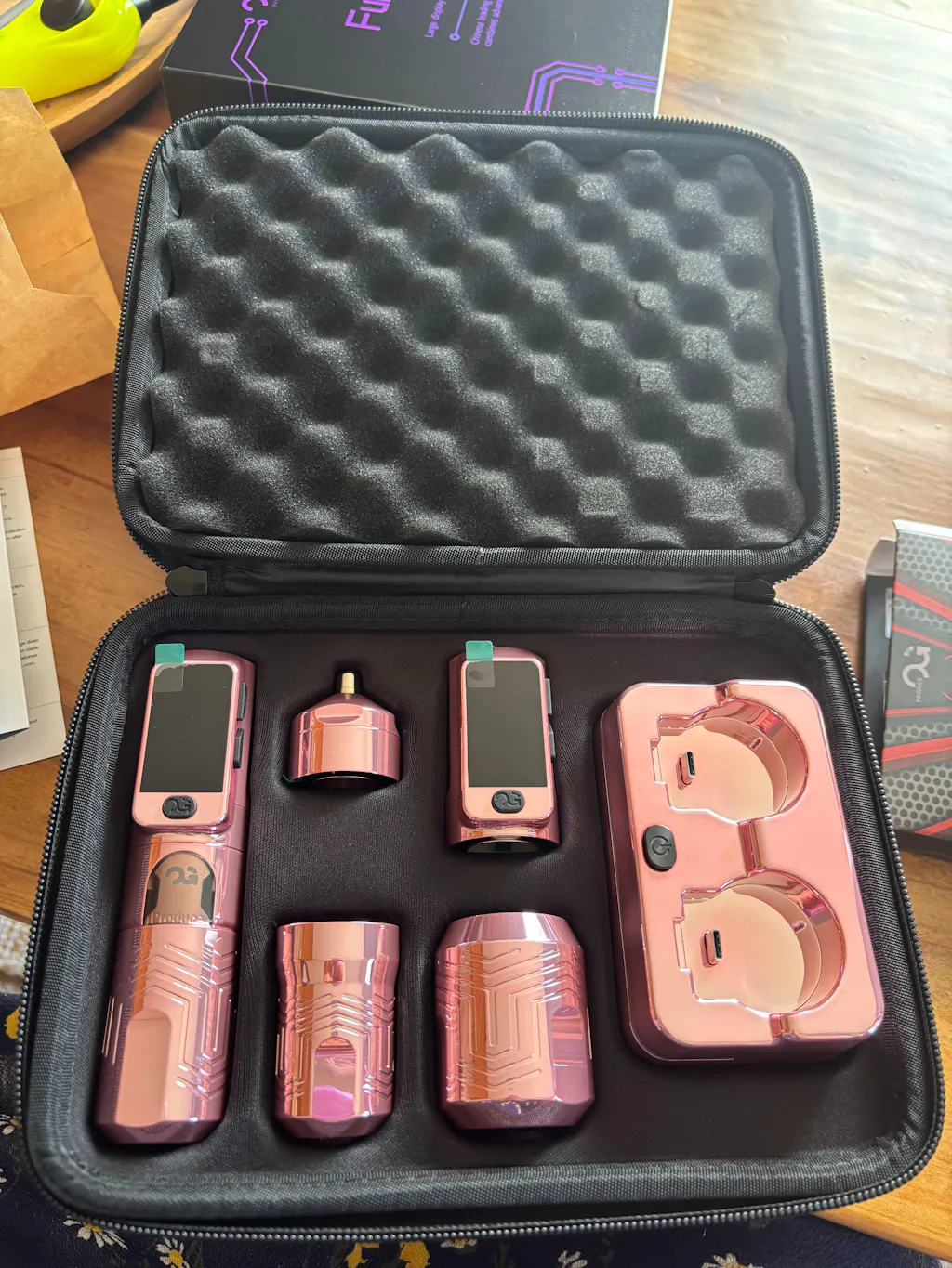 Package: Pen machine x1, Grips x3, Battery x2, Charging Base x1, Type-C charging cable x1, User manual x1, Accessory tool kit x1, Box x1